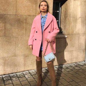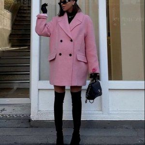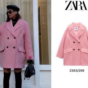 ZARA WOMEN NEW OVERSIZED DOUBLE-BREASTED COAT WOOL BLEND PINK SIZE S M 2263/299