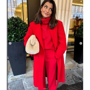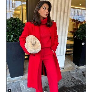 ZARA WOMEN RED LONG WOOL COAT DOUBLE BREASTED