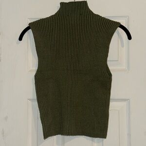 ZARA WOMEN RIBBED KNIT CROP TOP OLIVE Green SIZE L.NEW WITH TAGS SLEEVES LESS ,MOCKED NECK