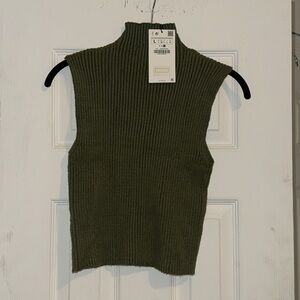 ZARA WOMEN RIBBED KNIT CROP TOP OLIVE Green SIZE L.NEW WITH TAGS SLEEVES LESS ,MOCKED NECK
