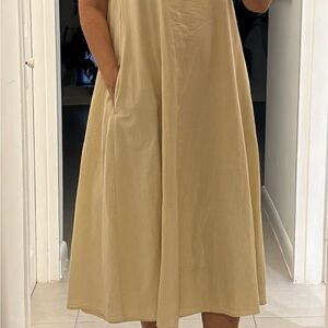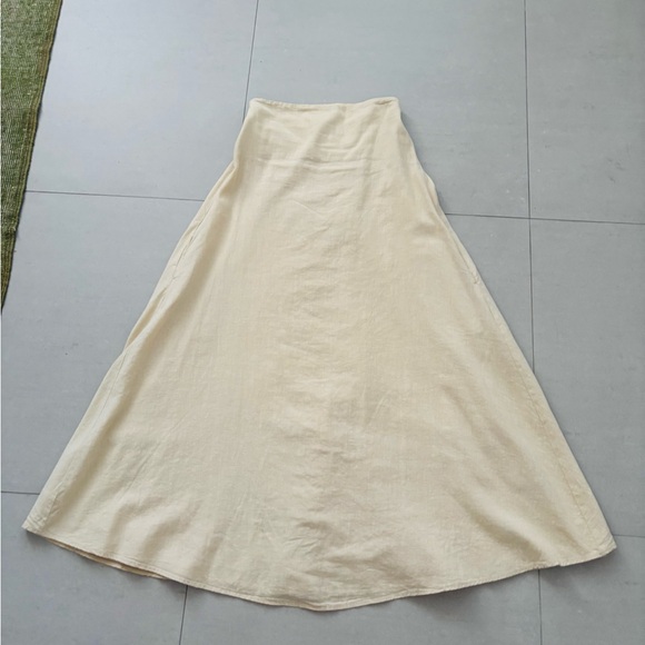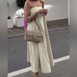 ZARA WOMEN SIZE XS LINEN BLEND MIDI DRESS STRAPLESS IVORY WITH POCKETS