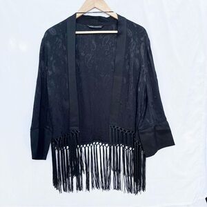 ZARA | WOMENS BLACK PAISLEY FRINGE KIMONO TASSEL OPEN CARDIGAN MEDIUM