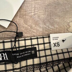 This product is a pair of Zara women's high rise leggings in a size XS, featuring a black and white plaid pattern. They are designed for a casual occasion and have an ankle length. These leggings are stylish and versatile, perfect for everyday wear. Made by the popular brand Zara, they are sure to be of high quality and fashionable design.