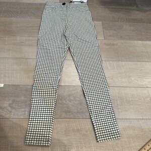 ZARA WOMENS HIGH RISE LEGGINGS NEW XS BLACK WHITE PLAID