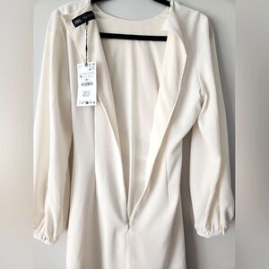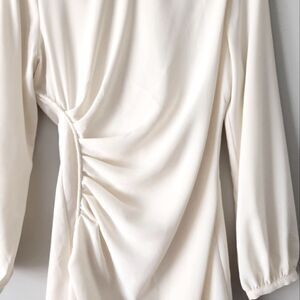 ZARA WOMEN’S SIDE RUCHED MINI DRESS WITH ROUND NECK AND LONG SLEEVES SIZE M BEIGE 25 inch