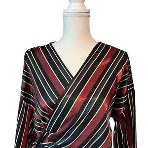 ZARA WOMENS STRIPED WRAP 3/4 SLEEVES V-NECK BLOUSE WITH TIES SIZE LARGE