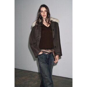 ZARA WOOL JACKET WITH FAUX FUR COLLAR ZW COLLECTION