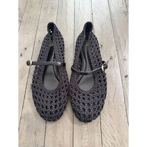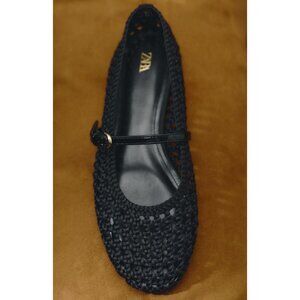 ZARA WOVEN STRAP BALLERINAS FLATS MESH Black Size 37 7 NWOB