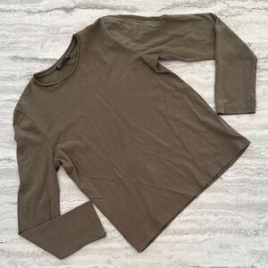 Super cute and comfy long sleeve tee! This is the perfect neutral wardrobe piece. Slightly relaxed fit. Color is called khaki. Worn once, hand washed and hung dry.