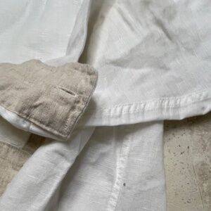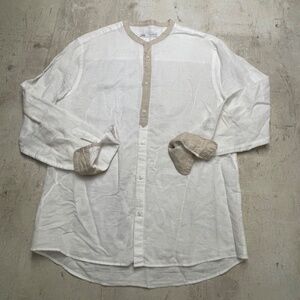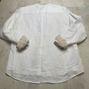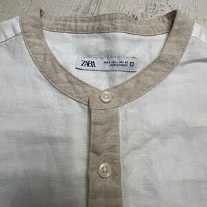 ZARA White 100% Linen Women's Henley Style Shirt with Tan Banding Size L