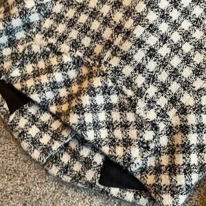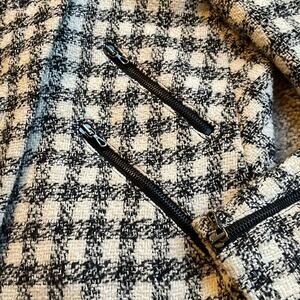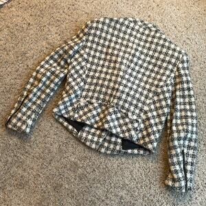 ZARA White & Black Checker Tweed Blazer Moto Jacket Size S