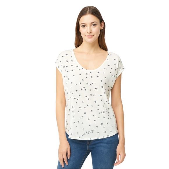ZARA White Black Star Novelty Print Short Sleeve Relaxed Fit Casual Top Size M
