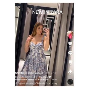 NEW with tags ZARA Blogger Favorite Blue White Floral Linen Blend Mini Sundress