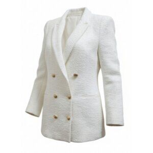 ZARA blazer, white blazer women, boucle jacket, textured blazer, gold button blazer, Zara white jacket, structured blazer, double breasted Zara, elegant blazer, classic white jacket, women’s size S blazer, Zara premium look.