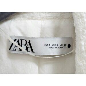 ZARA White Bouclé Double Breasted Blazer Gold Buttons Textured Jacket Women’s Size S
