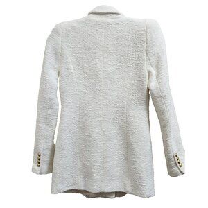 ZARA White Bouclé Double Breasted Blazer Gold Buttons Textured Jacket Women’s S