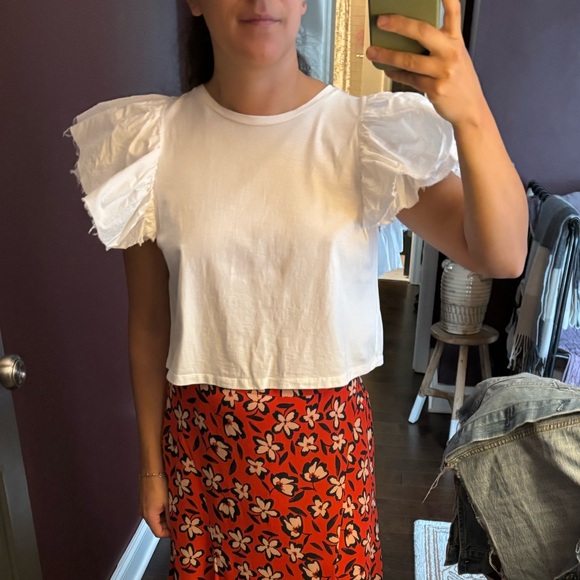 White Cropped Ruffle Top No stains, excellent used condition