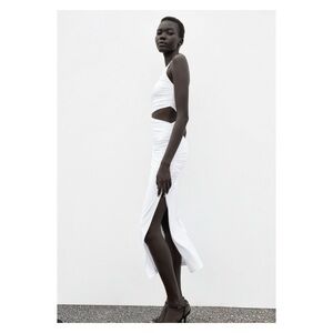 NEW with tags ZARA Blogger Favorite White Sleeveless Fitted Asymmetric Side Cutout Midi Dress