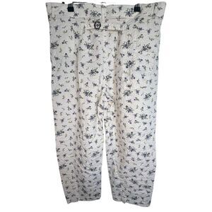ZARA White Floral Pattern Seersucker High Waisted Cropped Pants