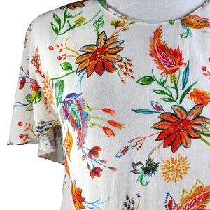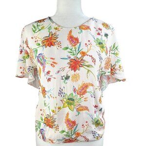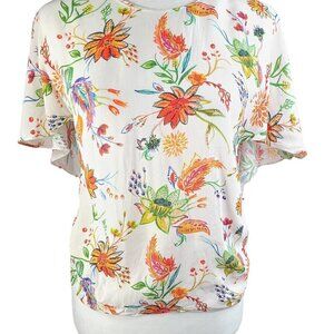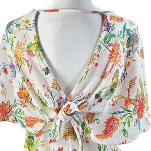 ZARA White Floral Secret Garden Open Back Bow Top Flutter Sleeve Crew neck