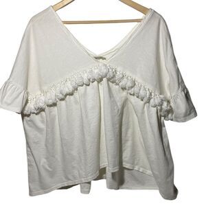 Size: L measurements are pictured. Top is 100% cotton, flutter sleeves, oversized slouchy fit.