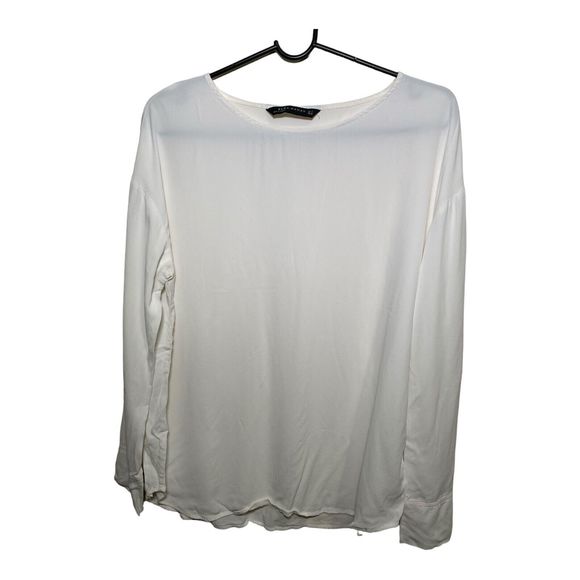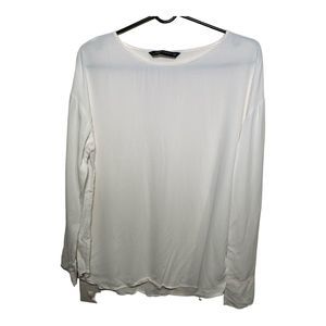 ZARA White Ladies Long Sleeve Round Neck Top Lightweight Blouse Size Small.