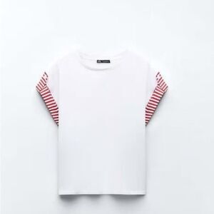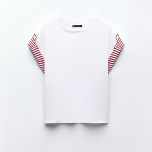 ZARA White/ Red Poplin T-shirt size small NWOT