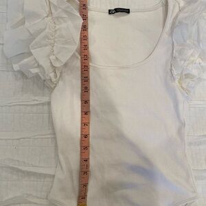 ZARA White Ruffle Sleeve Women's Bodysuit