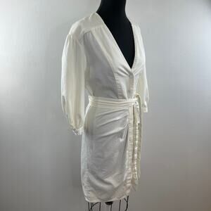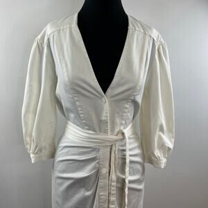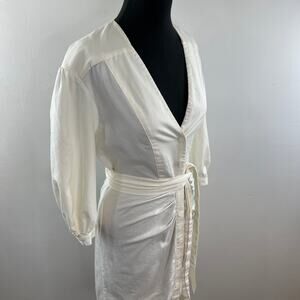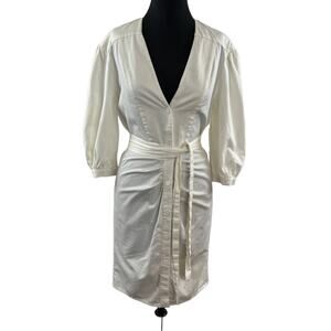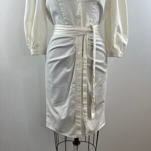 ZARA White Snap Front V-Neck Long Sleeve Belted Shirt Dress Sheath Knee Length M