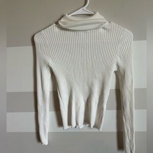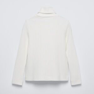 ZARA White Womens Ribbed Knit Turtleneck Long Sleeve Sweater