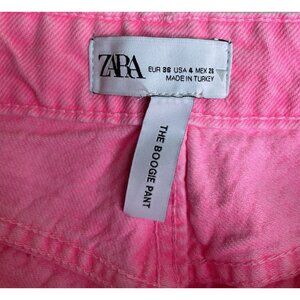 ZARA Pink Mid Rise Full Length Super Wide Leg Jeans Boogie 26 4 NWT