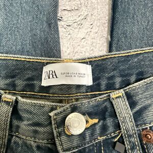 Women’s ZARA Wide Leg High Rise Full Length jeans with raw hems. 100% Cotton NWT, size 6/28