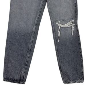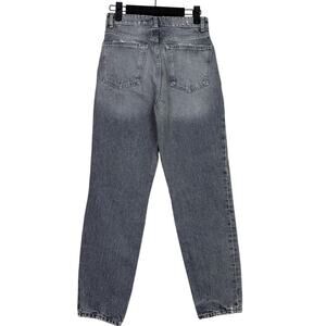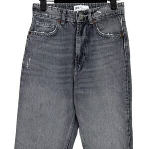 ZARA Wide Leg High Rise Vintage Distressed Cropped Ankle Jeans Raw Hem 2 Rinsed Washed Black Grey