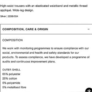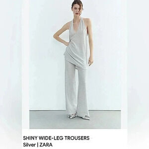 Zara Size Medium Wide Leg Trousers in Silver Metallic New with Tags