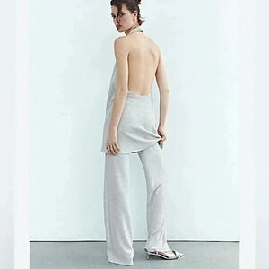 ZARA Wide Leg Knit Trousers Pull On Pants Metallic Sheer Party Disco Rave