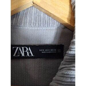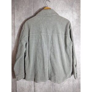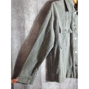 The ZARA Gray Wide Wale Corduroy Shacket Jacket is a stylish and versatile piece perfect for casual outdoor activities. Made from 100% cotton corduroy, this button-up jacket features a collared neckline, long sleeves, and a relaxed fit. With a solid gray color and a unique blend of heritage-inspired themes like hipster, nature, and biker, this jacket is ideal for winter, fall, and spring seasons. The lightweight design and convenient pockets make it a practical choice for travel, workwear, and everyday wear. PTP 22 in. Length 25 in.