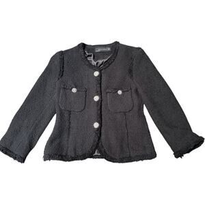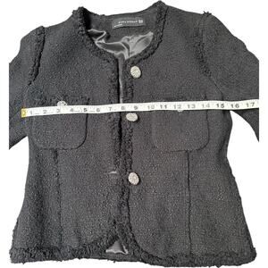 ZARA Woman Black Bouclé Tweed Jacket XS Rhinestone Buttons, XS