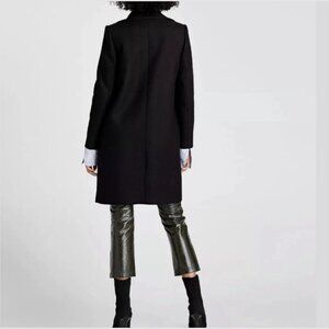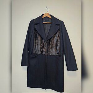 ZARA Woman Black Wool Coat with Faux Fur Panel – Size S