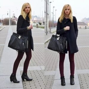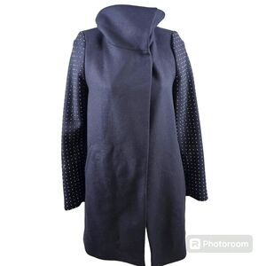 ZARA Woman Bloggers Fave Wool Blend Navy Silver Studded Coat in XS