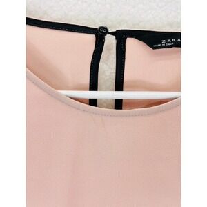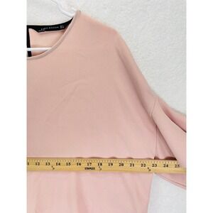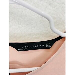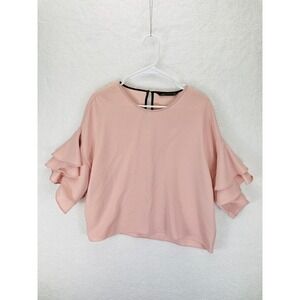 ZARA Woman Cropped Blouse Women’s Size L Pink Ruffle Flutter Sleeve Keyhole Top