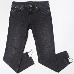 ZARA Woman Distressed Raw Step Hem Jeans Front Seam Stretch Black / Gray Sz 6