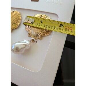 ZARA Woman Faux Pearl And Golden Textured Seashell Dangle Earrings Coastal Beach