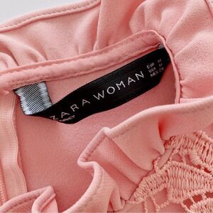 ZARA Woman Lace Sleeveless Mini Floral Fit & Flare Ruffle Dress Blush Pink M