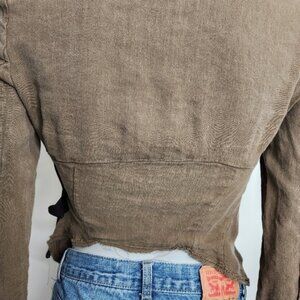 ZARA Woman Olive Green Loose Linen Jacket with Ribbon Tie Size XXS