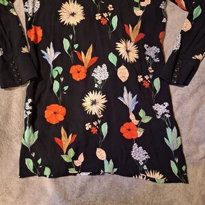 The ZARA Woman Premium Denim Collection Mini Shirt Dress in size S is a stylish and versatile piece perfect for various occasions. Featuring a floral pattern in a classic black color, this dress has a collared neckline with button closure and long sleeves. Made from lightweight viscose material, it is easy to care for with machine washable instructions. The dress has a shift style and a short length, making it ideal for travel, parties, or casual wear during the summer and spring seasons. Perfect for those who appreciate a colorful and flower-themed wardrobe addition by a trusted brand like Zara.