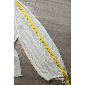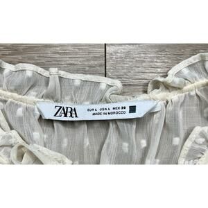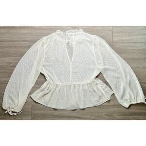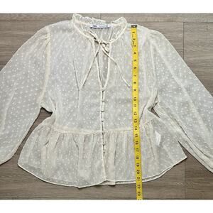 ZARA Woman Sheer Dobby Dot Blouse Long Sleeve Peasant Top Ivory White Size L