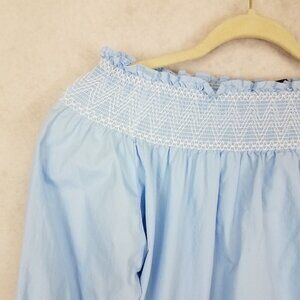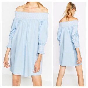 ZARA Woman Size XS Off-Shoulder Poplin Mini Tunic Dress in Ice Blue