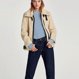 ZARA | Woman | Teddy Faux Shearling Moto Biker Jacket | Size M 🍁🍂 🏍️