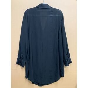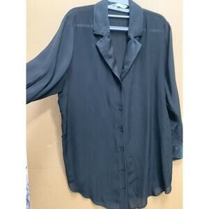 ZARA Womans Sheer Black Long Sleeved Button Down Blouse Satin Cuffs & Collar MED