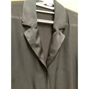made from an ultra luxe sheer black chiffon fabric (tag is missing) with notched satin collar and buttoned satin cuffs.